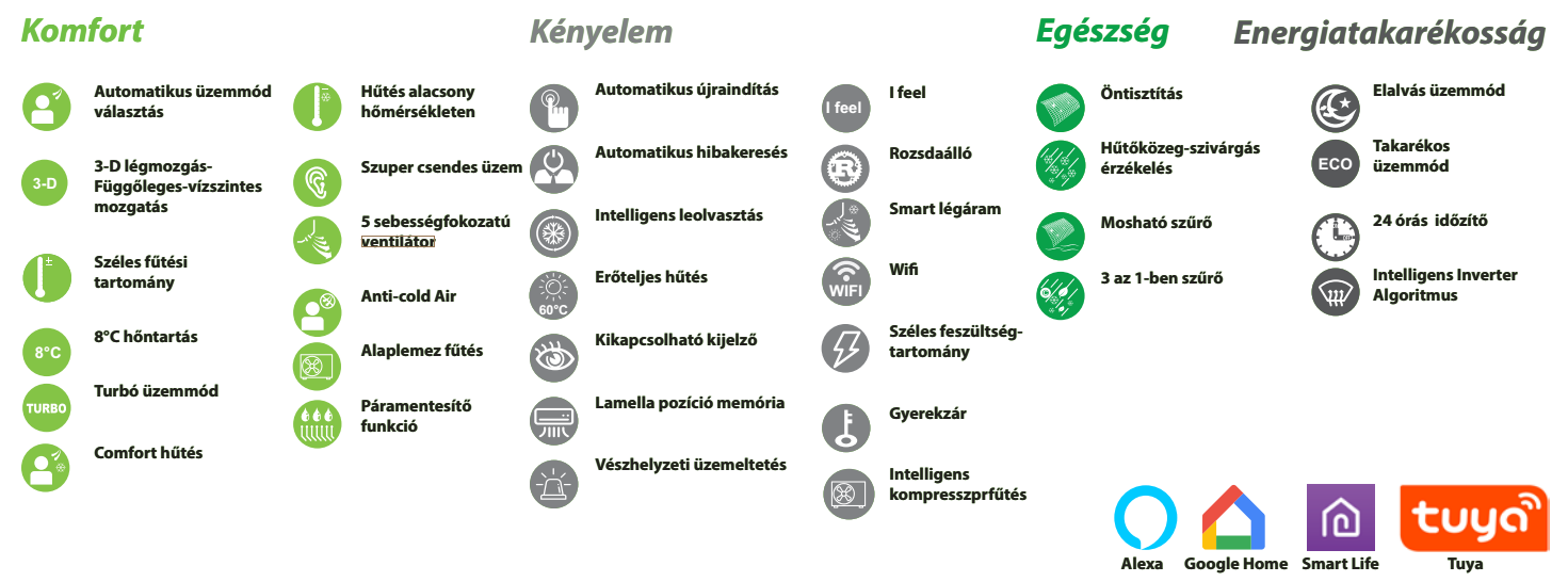 A Polar SIEH0025SDOB/SO1H0025SDOB Optimum Inverteres Split klíma fontos tulajdonságai: